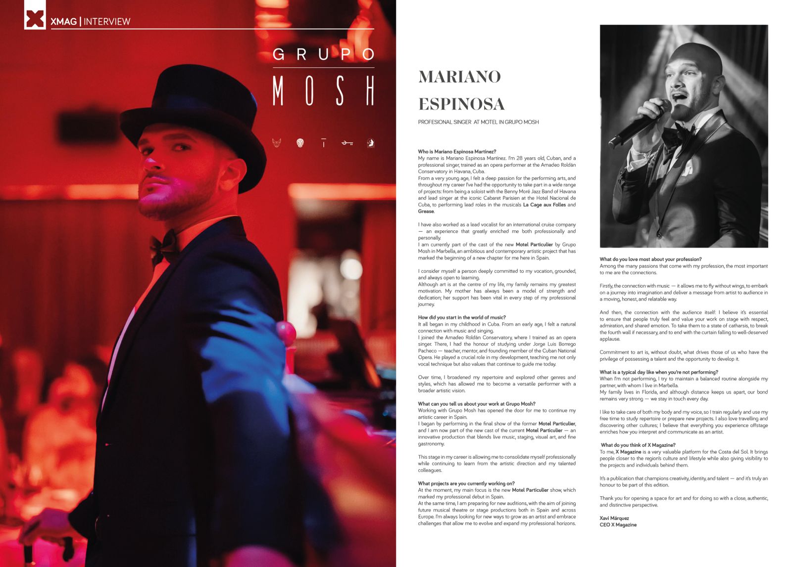 Mariano EspinosaBrindo espectáculos que combinan canto, interpretación y conexión directa con los asistentes, ideales para bodas, recepciones, galas, cenas corporativas, presentaciones especiales y experiencias inmersivas. Tanto en formatos íntimos como en producciones de gran escala, garantizo un ambiente emocionante, cuidado y memorable para cada cliente.
